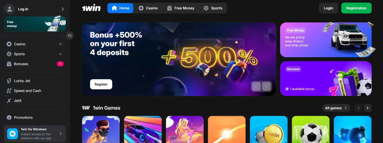 1Win पर नए यूज़र्स साइन-अप करते समय 1WGLIN कोड डालकर अपने पहले डिपॉजिट पर 500% बोनस प्राप्त कर सकते हैं।